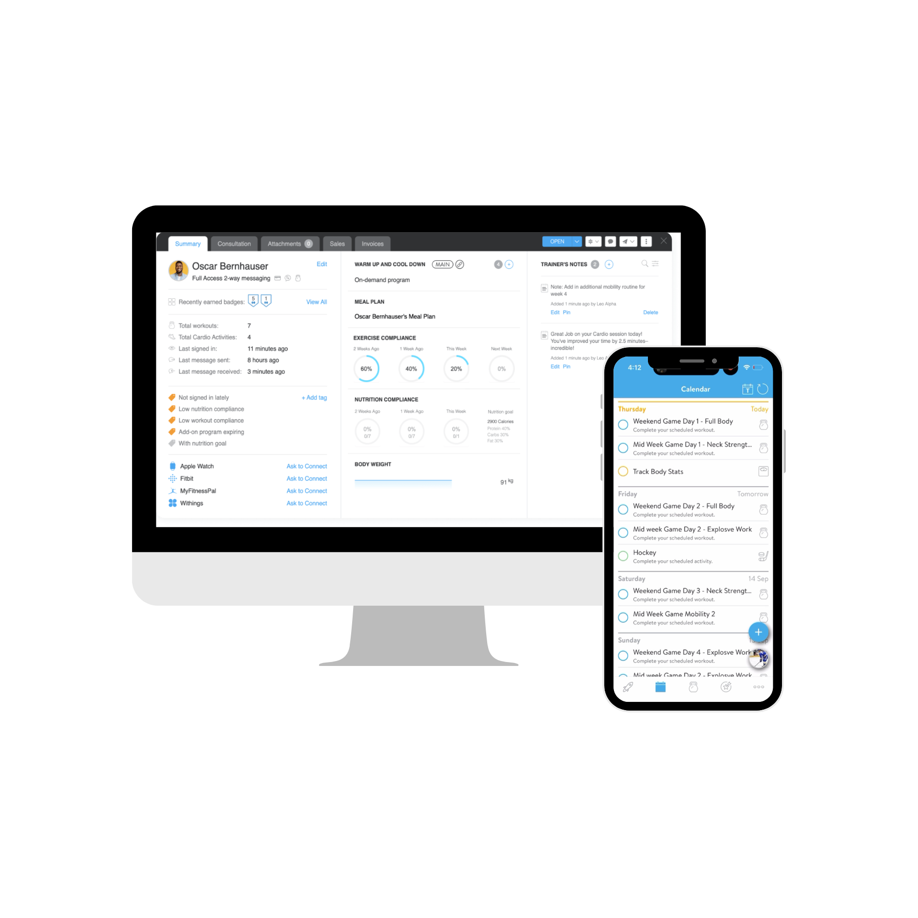 Progress will be tracked through the Trainerize app in a variety of different metrics. Body weight is tracked once a week. Athletes will also be tracking their weights lifted in every workout. Athletes will also have the opportunity to track their food, sleep and exercise volume by connecting devices such as apple watch, fitbits or Garmin.